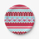 Christmas Red And Blue Chevron Stripes Pattern Paper Plate