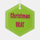 Hexagon Shaped Glass Christmas Tree Decoration Hanging Ornament printed with Christmas Red And Brat Green text typography graphic art design illustration and select products collection by TheFabricSeal print on demand shop at Zazzle.com #ZazzleMade https://www.zazzle.com/store/thefabricseal TheFabricSeal©️Original.