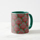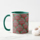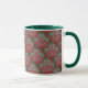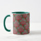 Christmas Mug for coffee or tea. This print has a bohemian print. The colours are red, green white. The inside and handle are green. Style: Combo Mug