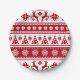 Christmas Red and White Deer and Trees Pattern Paper Plate