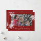 Bright cheerful Christmas red with white snowflakes and script. The words We Wish You Merry Christmas on the front. Joyous New Year on the back with your family name. Customise it with your own photo name text