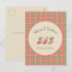 The 'Christmas red-based Plaid Holiday Postcard' is a festive design perfect for the holiday season. It evokes feelings of nostalgia and warmth associated with Christmas. The design predominantly features various shades of green, giving it a natural and traditional feel. Red and cream accents add a classic and timeless touch, enhancing its overall festive appeal.
