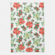 Christmas Red Berries Cardinals Poinsettia Pattern Tea Towel