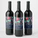 Christmas Red Botanical Floral Blue Holiday Wine Label