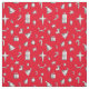 Cute red Christmas fabric with a pattern of illustrated elements in black and white. The images are stars, presents, hats, etc. Unique fabric for your quilting and craft projects. Illustrated and designed by Patricia Alvarez.