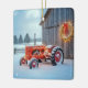 Christmas Red Farm Tractor In Snow Ceramic Ornament