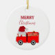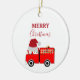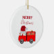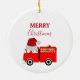 A cute illustration of a red fire truck wearing a Santa hat and decorated in Christmas lights. The adorable red fire engine rushing off to put out a fire. Perfect gift for anyone and any age. An all time favourite emergency vehicle.
