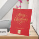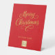 Elegant Christmas table sign for Businesses. Red background, golden text