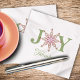 A simple snowflake with Joy script. A cute personalised custom template with a modern simple style. A colourful way to celebrate your holiday and Christmas get-togethers. This design features Christmas holiday red and green, cute whimsical joy typography, minimalist simple script typography, holiday Christmas paper napkin, festive red green snowflake pattern, Christmas cocktail party supplies, Christmas holiday party, colourful bright snowflakes, family and friends celebration, holiday barware home bar
