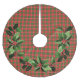 Christmas tree skirt with red, green, and white Christmas Plaid and seasonal holly and berries.