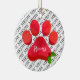 Christmas Red Paw Print MEOW Cat NAME Holly Fun Ceramic Ornament