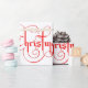 Christmas in Fancy Red Script with Scrolls and Green and White Ribbon personalised wrapping paper. Personalise this wrapping paper by changing the background colour or switching out the tiled image for your own.