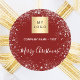 Christmas red silver glitter business logo classic round sticker