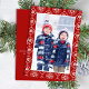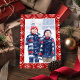 This merry Christmas photo card, a Christmas holiday, elegant red snowflake design with a one photo template, and a brush script typography, a simple minimalist, red and white, classic traditional, modern winter, cute whimsical, holiday photo card