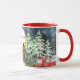 Christmas Red Truck Santa Rustic Winter Holidays Coffee Mug features a rustic winter design with a red truck, snowman, reindeer, cabin, Christmas tree and Santa. Designed by Evco Holidays www.zazzle.com/store/evcoholidays