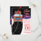 This cute and festive Christmas party save the date is perfect for setting the mood for your holiday event. It features a hand-drawn and hand-painted watercolor red and blue 70's Santa van with a puppy dog reindeer driver and packed colourful presents on top of the roof with a glowing red lighted typography. The little cutie is driving in falling white snow on a black road during a black and blue gradient night sky. It's artsy, adorable, and unique!