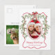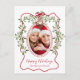 Christmas Red Wavy Frame Bow Greenery Photo Holiday Postcard