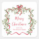 Christmas Red Wavy Frame Bow Greenery Square Sticker