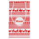 Traditional and beautiful pattern from Lapland for christmas gifts occasion. Rein deers and snow crystals in red on customisable small gift bag with white tag for name or text.