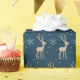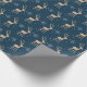 Elegant, modern Christmas blue gift wrapping paper with a reindeer and snowflake motif.