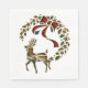 A festive Christmas paper napkin featuring a gold reindeer with a trail of gold stars, red bow and green holly in the shape of a Christmas wreath. This Christmas party napkin would add a touch of flair and style to your Christmas entertaining during the holiday season.