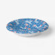 Cute singing birds with prancing deer jumping over Christmas presents with musical notes, snow and stars, graphic patterned Christmas paper bowls in shades of bright blue, red and white. Ideal for Christmas parties. Original art and design by www.mylittleeden.com