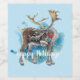 Watercolor reindeer with festive ribbon and holly on his bridle and customisable white "Happy Holidays" text on background of blue watercolor splash and snow