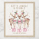 Christmas Reindeer Jingle & Mingle Festive Party Personalised Name Wine Labels Stickers features festive reindeer with pink bows and floral accents with the text "Let's Jingle & Mingle" in modern gold calligraphy script typography with your personalised name. Perfect personalised gift for Christmas and the holidays for family and friends. Designed by ©2024 Evco Holidays www.zazzle.com/store/evcoholidays