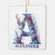Celebrate the season with this A Monogram Christmas Ornament, where artistry meets festive charm! This unique design incorporates a reindeer into the letter "A," blending seamlessly into the monogram with intricate details. The reindeer is adorned in Scandinavian-inspired sweater , surrounded by a stunning arrangement of red and blue winter florals. Perfect for adding a touch of elegance and personalisation to your holiday tree or as a thoughtful gift for someone special! This one-of-a-kind ornament is the perfect way to combine holiday cheer with personalised charm for the ultimate festive decoration! Add a name to make it even more custom. Edit name from the product page or to change font style or colour, use the design tool.