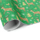 Christmas Reindeer Playing Under Xmas Trees Green Wrapping Paper