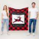Christmas Reindeer Red Buffalo Plaid Custom Name Fleece Blanket