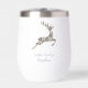 Elegant and trendy, this Christmas wine tumbler is a stylish gift for her. Featuring a vintage blue toile chinoiserie pattern behind a cute reindeer silhouette.