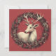 This charming 5.25" x 5.25" square greeting card captures the whimsical magic of the holiday season with a beautifully illustrated white Christmas reindeer nestled within the lush greenery of a classic holiday wreath. The reindeer, rendered in soft, painterly strokes, seems to glow with wintry elegance, evoking the spirit of Santa's reindeer as they prepare for their yearly sleigh ride through snowy skies. The holiday wreath, detailed with evergreen boughs, red berries, and delicate touches of seasonal charm, frames the peaceful reindeer in a festive border that feels both timeless and warm. Perfectly sized for a heartfelt message, this pretty Christmas card adds a special touch of holiday cheer to any envelope it travels in.