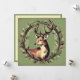 Here's an lovely holiday card with a Christmas reindeer surrounded by a Christmas wreath. This is a painted illustration in brown, cream and green. It's a cute Christmas card to use as an invitation, a Christmas card or to give with a gift.