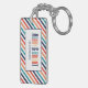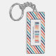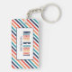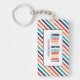 Retro colourful stripes with vibrant typography "Merry & Bright" keychain. Personalise it with your name.