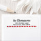 This design features a Christmas return address label, simple seals, with a red and white theme, an informal casual, stylish trendy, with candy cane stripes, and a festive, minimal, modern minimalist, that matches the north pole times newsletter.