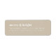 A stylish modern holiday return address label featuring a bold retro typography quote “Merry & Bright” in white on a natural neutral stone beige background. This trendy and minimalist design combines classic holiday charm with a clean, contemporary look. Personalise it easily with your own greeting, family name, and address for a unique touch that feels both festive and refined. Perfect for pairing with our matching holiday card collection in the same elegant design, this label adds a polished and coordinated finish to your seasonal stationery. A bold yet simple choice that stands out beautifully and brings a modern twist to your Christmas mail.