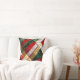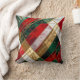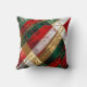 Holiday throw pillow with a design of shiny ribbons in red, green, white, and gold.