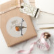 Seasons Greetings Red Robin Holiday Round Sticker. Part of The Red Robin Christmas Collection. A single hand painted red robin sat on a snow-covered branch. Customise with your seasonal greeting.