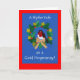 A colourful Christmas Card with a Robin Redbreast sitting in a wreath of holly and ivy, from a handpainted, paper collage, and the greeting in Scots. Please contact me through my store if you would like the front cover text changed (eg to a different language) and the inside is left blank for your own message.