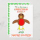 This fun Christmas party invitation is fully customisable. The front features a cute Christmas Robin character with a bright red breast, brown body and beady black eyes. It has its yellow beak wide open as it sings a Christmas carol. Its wings are outstretched as it joyously waits for Christmas. There is large red and green text announcing the party. The back of the invite has a stylish frame of holly and customisable black and red text for you to enter all your party details. For simple customisation just type your party details in the boxes provided, or for more extensive customisation options click on the "customise it" button where you will be able to select different fonts and text colours, move text around and much more.