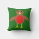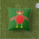 This awesome outdoor pillow features a cute Christmas Robin character with a bright red breast, brown body and beady black eyes. It has its yellow beak wide open as it sings a Christmas carol. Its wings are outstretched as it joyously waits for Christmas.