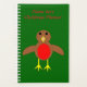 This awesome planner features a cute Christmas Robin character with a bright red breast, brown body and beady black eyes. It has its yellow beak wide open as it sings a Christmas carol. Its wings are outstretched as it joyously waits for Christmas.