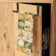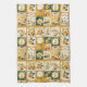 A golden Christmas collage of roses, text, ornaments, and other flowers make a perfect Christmas kitchen towel.