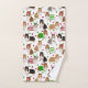 Cute Rough Collie dogs dressed in festive holiday outfits, Santa hats and argyle sweaters with scattered Christmas ornaments.