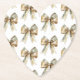 Christmas Rustic White Green Gold Bows Paper Coaster