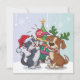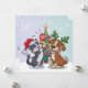 A heartwarming Christmas Day celebration where pets, especially a playful cat and a joyful dog, are the centre of attention. The scene features a cosy living room adorned with twinkling lights, a beautifully decorated Christmas tree, and wrapped presents. The dog is excitedly wagging its tail, wearing a festive holiday sweater, while the cat, perched near the fireplace, playfully bats at an ornament. Both pets are surrounded by stockings, festive treats, and a sense of joy and love, capturing the magic of Christmas through the eyes of our beloved furry friends.