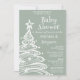 Couples gender neutral baby shower Christmas tree sage green baby shower invitation with a cute whimsical fun baby shower invitation for a festive Holiday baby shower.