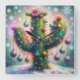 Christmas Saguaro Cactus Whimsical Snowflakes Square Wall Clock