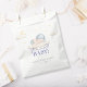 The "Santa Baby" shower favour bag has a sweet, festive design, featuring a baby in a blue Santa hat with soft clouds and stars. It uses playful red script and pastel tones, creating a cosy holiday feel, perfect for a winter baby shower.